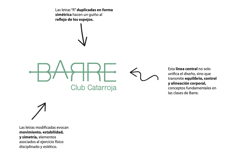Equilibrio técnico: Esa línea central que atraviesa el logotipo no es solo estética; simboliza el control, la alineación y la estabilidad, pilares fundamentales del Barre.