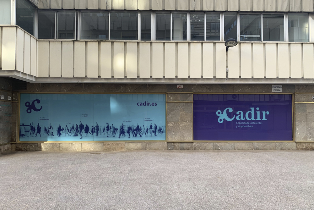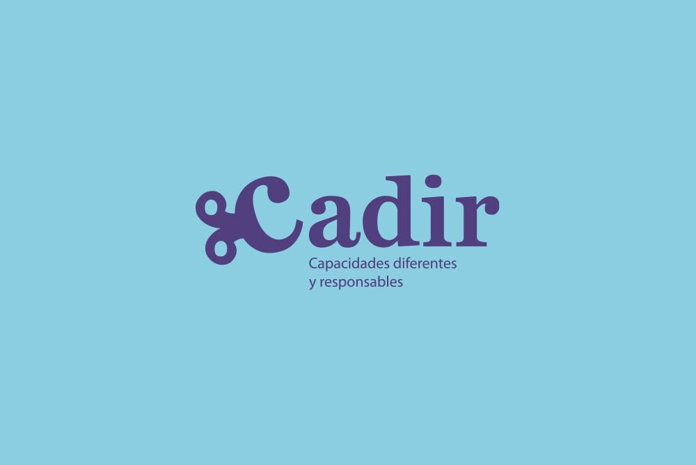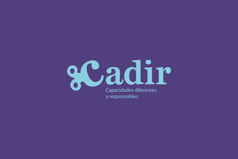 Cadir es una entidad que ofrece servicios para demandantes de empelo mediante una inclusión real de colectivos en riesgo de exclusión social y colectivos con diversidad funcional. Para la creación de la marca nos hemos inspirado en una llave de dar cuerda que representa la «C» que además está inclinada para dar a la marca dinamismo, movimiento y representar la diversidad. La tipografía es con serifa para transmitir seriedad formalidad.Los colores corporativas son el morado y un azul claro, el morado se asocia a justicia, fantasía, fortuna y el azul es el color del cielo, calma, libertad y no sda un toque de frescura.