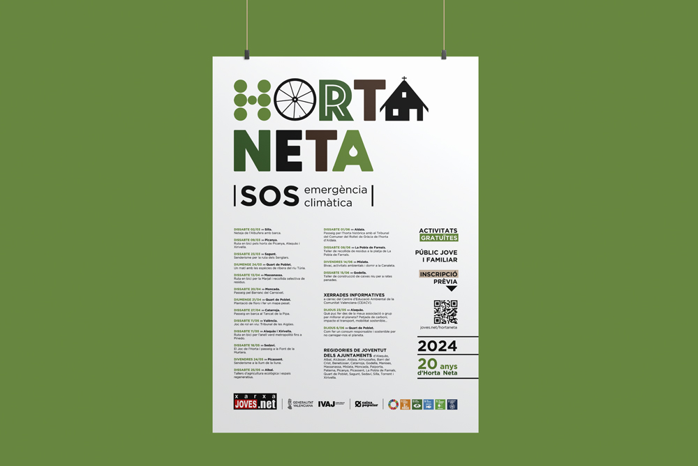 Creación de la imagen de la campaña Horta Neta 2024. SOS: emergencia climática del Consorcio Xarxa Joves.net. Este proyecto representa un paso adelante en la concienciación y la lucha contra el cambio climático, centrándose en la preservación de nuestro entorno natural.